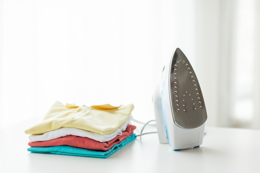 スラックスやシャツはアイロンでぴしっと。ニットなどはスチーマーで仕上げると柔らかくと使い分けができるといいですね。アイロンはあるけどアイロン台はないです。というスタジオは意外と多いです。