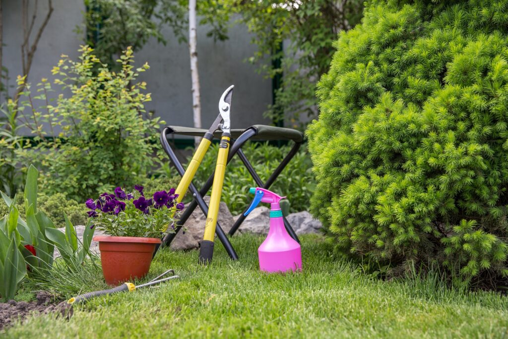 芝生や庭ならではのシチュエーションを魅せるには、グリーンや花などの植物はもちろん、小物や雑貨にこだわってみるのもおすすめです。植木鉢やガーデニングツールを添えたり、ガーデンチェアを設置したり、被写体とのバランスを考えながらスタイリングして世界観を作りましょう。