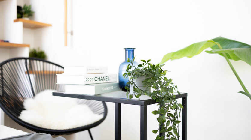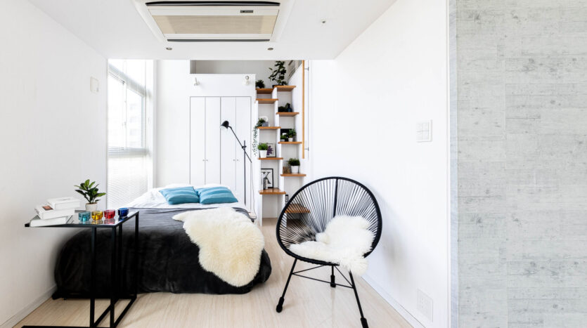 3人掛けソファー、1人掛けソファー、リビングテーブル、サイドテーブル、ダブルベッド、羊毛ラグ、人口観葉植物などの備品もご用意しています。
