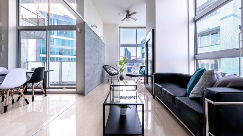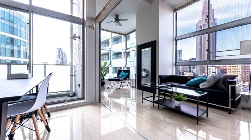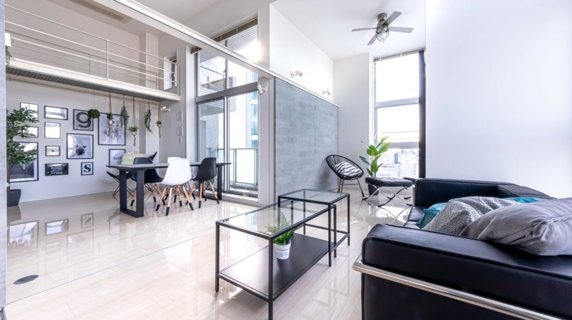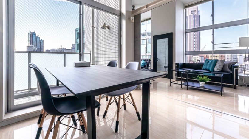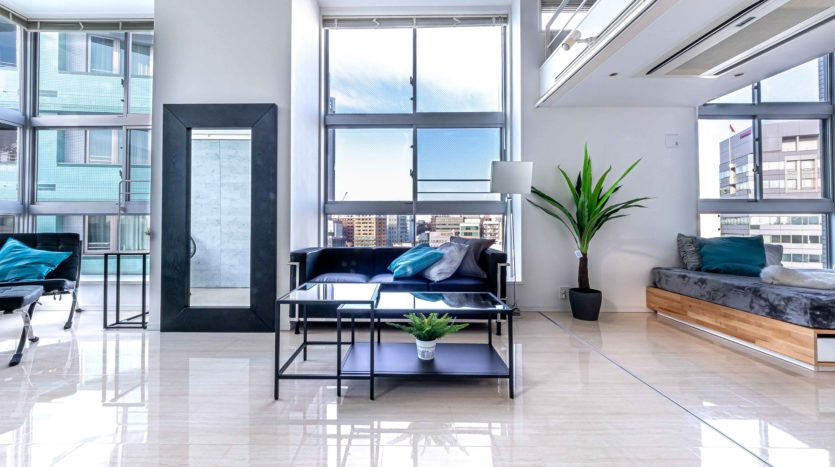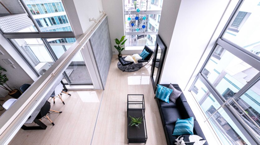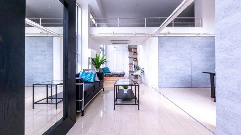 1LDK のロフト付きで、80㎡を超える広さを持っています。2面採光で4m高の天井がある開放された空間となっていて、大きな窓からは新宿の景色を一望できるので、タワーマンションにいるかのような雰囲気で撮影ができます。日が暮れてからの撮影も綺麗です。コンクリート調の間仕切りは可動式なので、シーンに合わせてご利用いただけます。生活感ある住居風やオフィス風のシチュエーションの撮影が可能です。ロフトを利用した俯瞰撮影をはじめ、ドラマ、CM、ポートレート、雑誌撮影などに適しています。