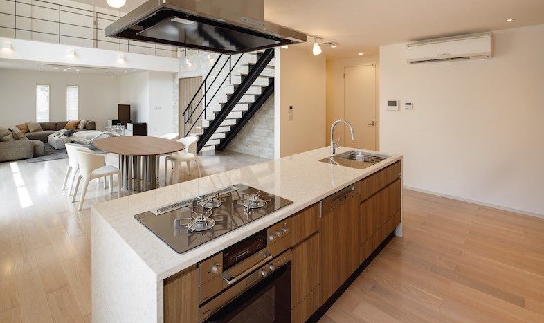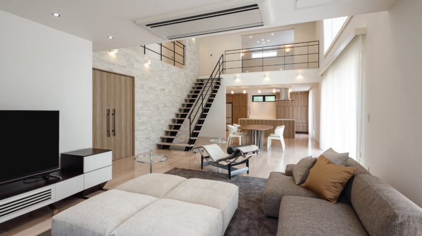 ミニマルなデザインの邸宅は吹き抜け構造で、自然光がたっぷり降り注ぐ空間となっています。1階リビングは約52㎡で天井が高く設計されているため、俯瞰撮影としてもおすすめです。キッチンはメインとサブの2種類ご用意しています。充実したキッチン設備もあるので、料理番組やYouTube動画、雑誌、CMなどの撮影にも適しています。2階にはルーフバルコニーも併設していて、開放感ある撮影が可能です。モダンテイストの洋室、廊下、キッチンなど、さまざまなシーンに対応できるスポットが多数あります。