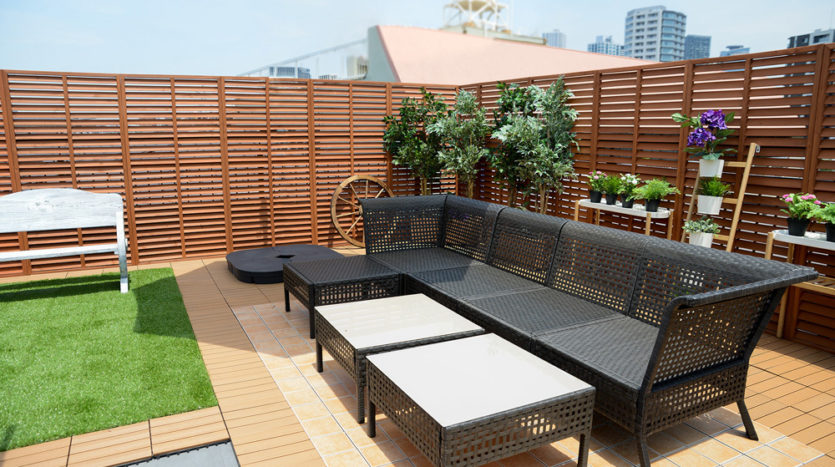 屋上は、グリーンの人工芝が広がっていて、ジャングルジムや長椅子などを使用した撮影が可能です。