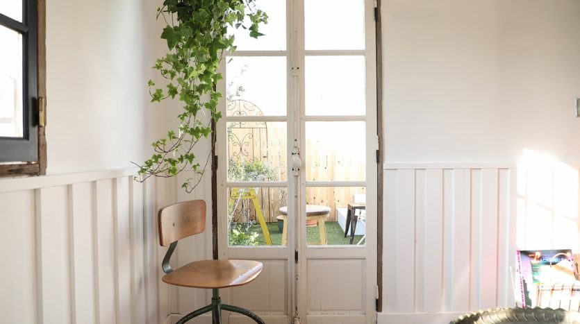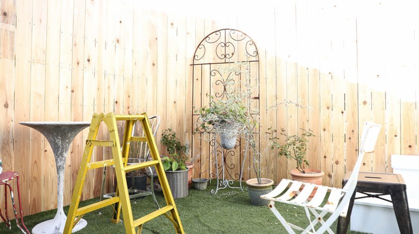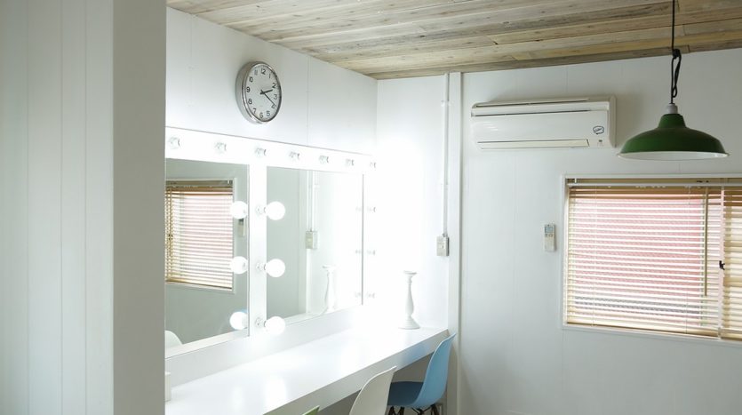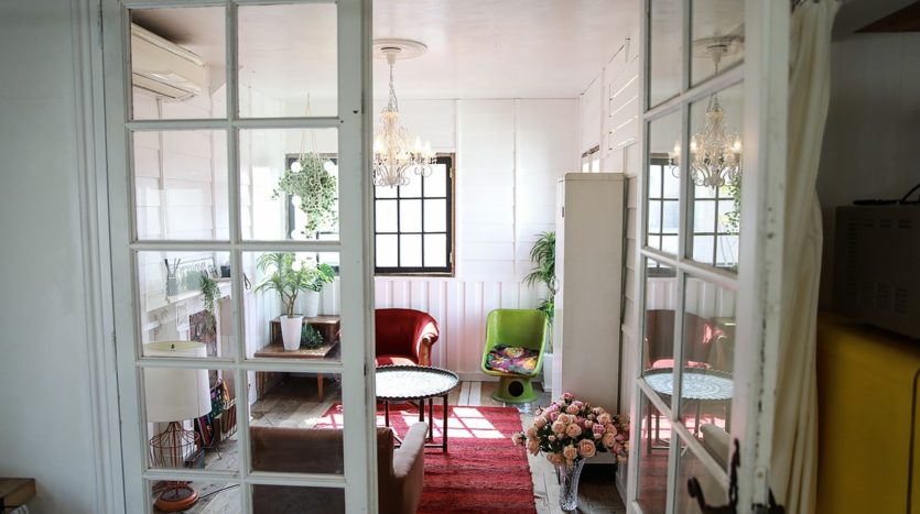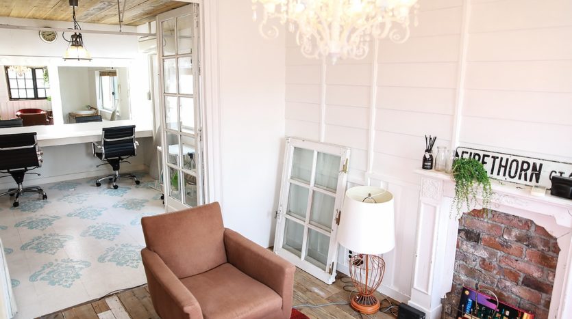 4階には、ガーリーな雰囲気のメイクルームと小さなテラスがあります。シェンデリアやガラス扉など、かわいい空間となっています。