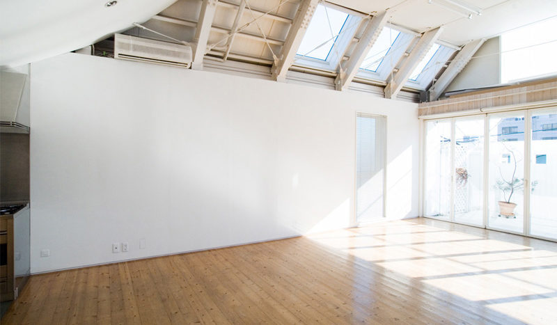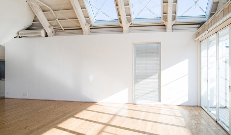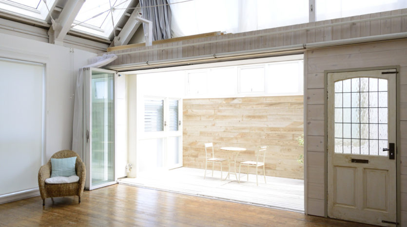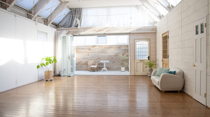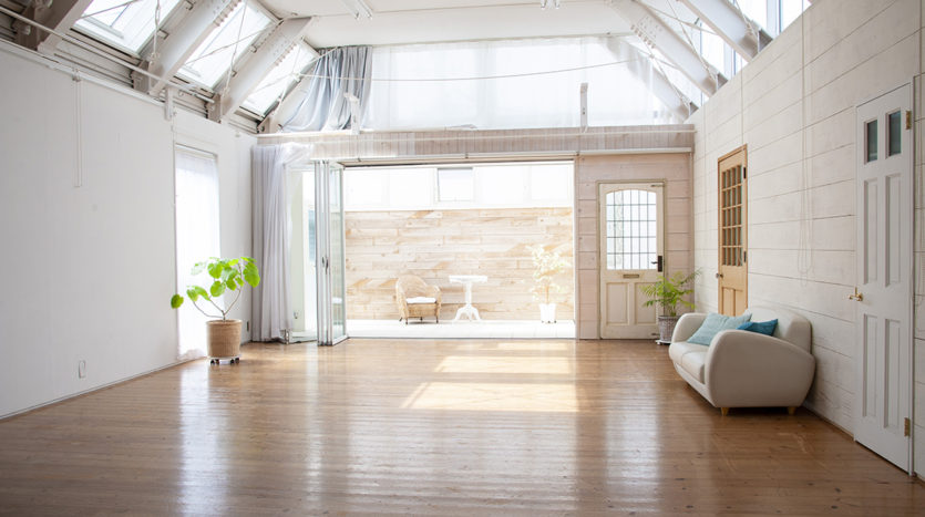 高い天井とテラスからは太陽光が早朝から日没まで降り注ぎ、自然光を活かしたファッション、人物、インテリアなど幅広い撮影が可能です。斜俯瞰撮影や、バックペーパーを使った全身の撮影にもぴったり。独立したメークルームがあるため、着替え部屋、楽屋としても活用いただけます。