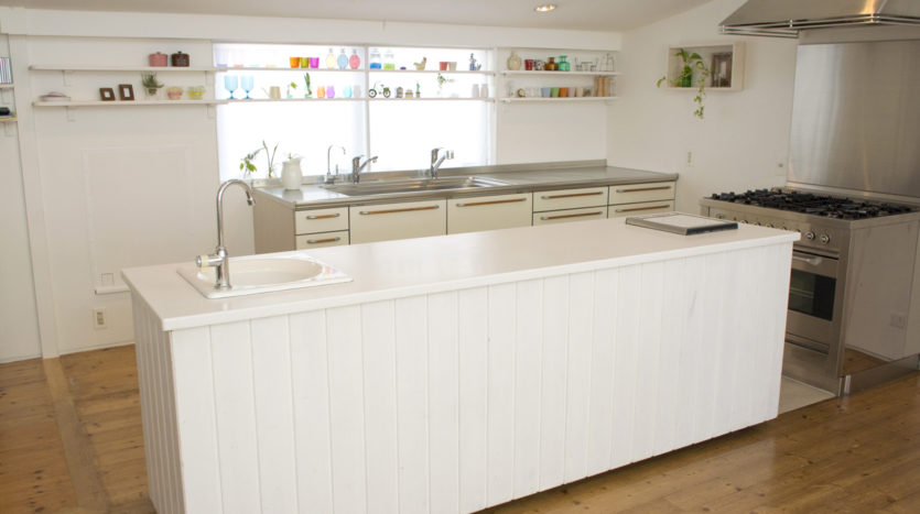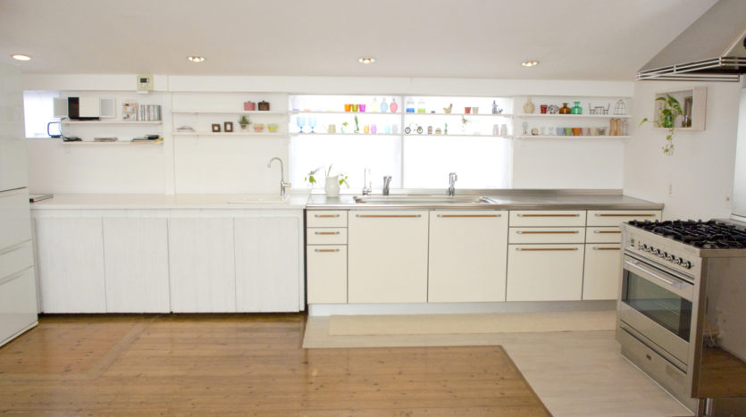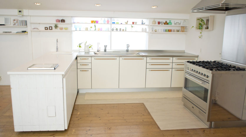 また、トーヨーキッチン製のシステムキッチンも完備。可動式のアイランドキッチンカウンター、イタリア製のオーブンレンジ、各種調理器具などを備えているため、本格的な料理撮影にもおすすめ。
