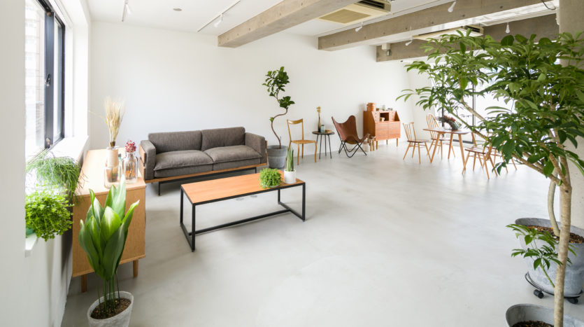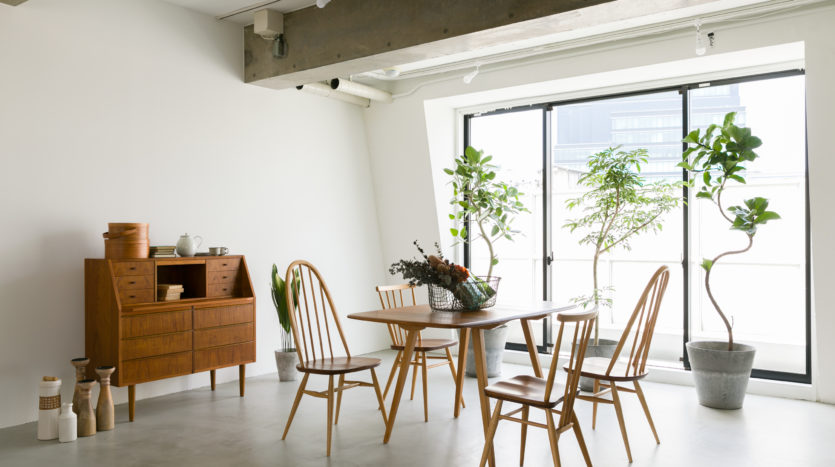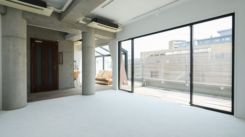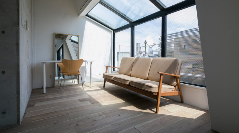 4F-5Fのスタジオは大きな窓に囲まれ、自然光たっぷりの明るいペントハウスのスタジオです。モルタルの床の4Fとテラス、天窓がある5Fの両フロアともに自然光撮影が可能です。室内はウッド製のナチュラル家具で揃えられており、観葉植物も豊富。シンプルながらセンスの良い空間となっています。また、5Fのウッドデッキからは空抜けが撮影できます。