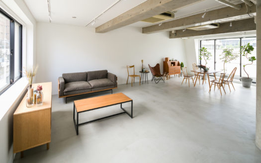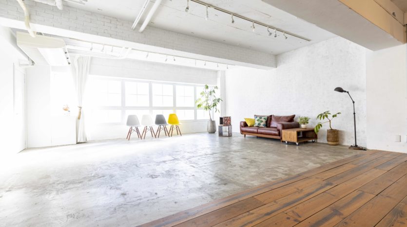 青葉台エリアにあるビルの5Fと6Fがハウススタジオとなっており、壁一面の窓から入る自然光がコンクリートと白壁の室内を包み込みます。