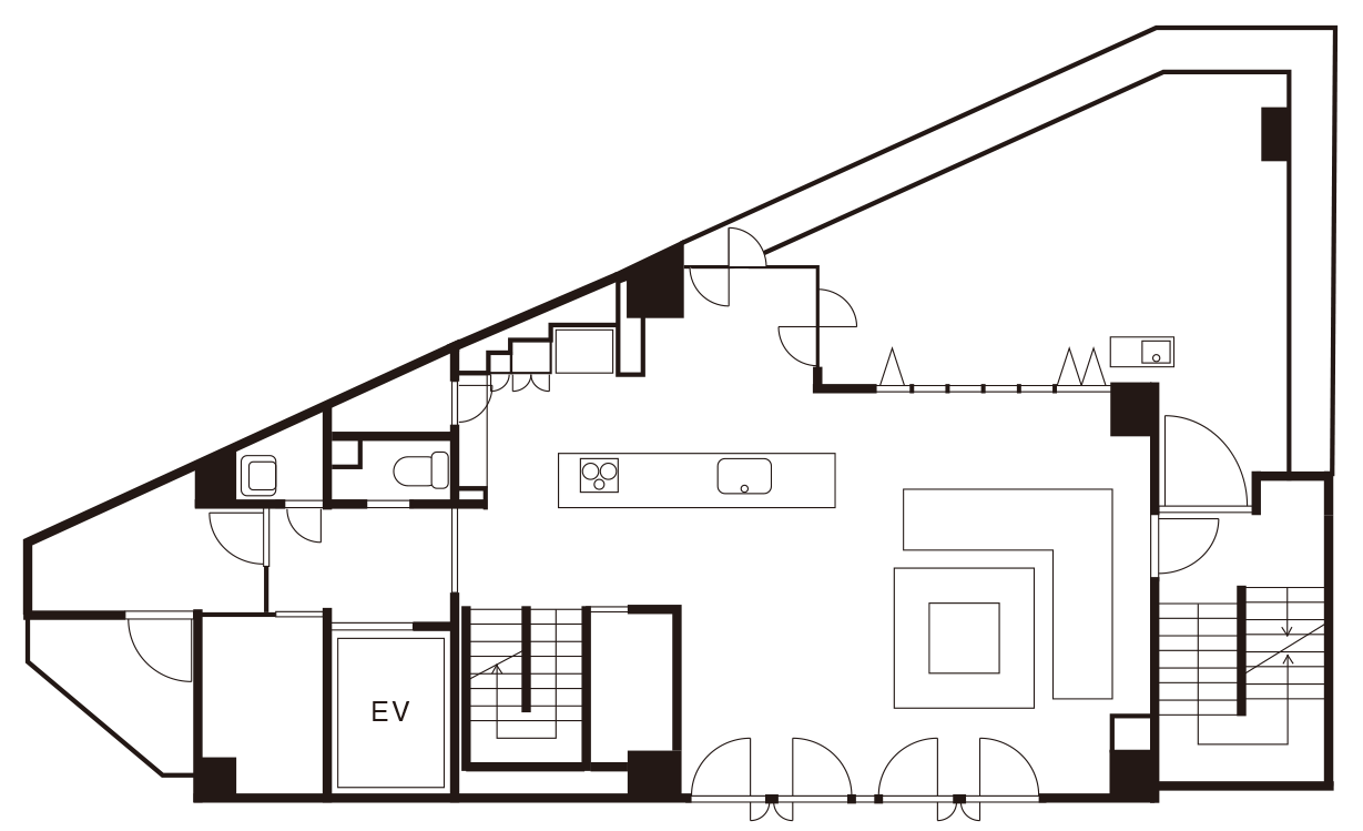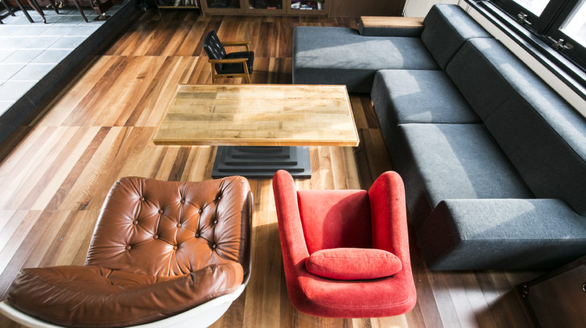 室内はデザイナーズ設計の都会的な雰囲気でコンクリート打ちっぱなしの壁、アートの描かれた壁、イエローやグレーにカラーリングされた壁とフローリング床、大きなサイズの石床タイルの組み合わせとなっており、多様なシチュエーションに対応します。