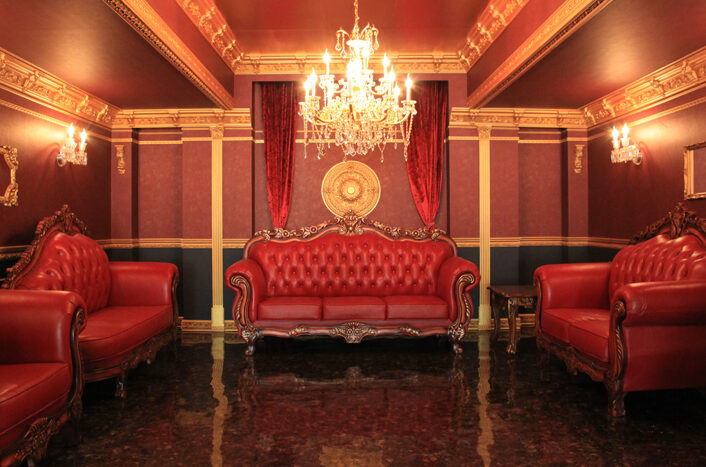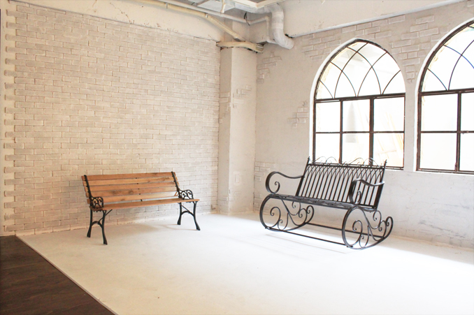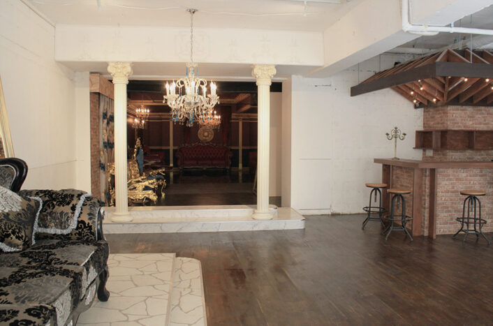 広々した空間は白レンガ壁とステージ、ギリシャ柱のあるルネッサンス調のエリア、ゴージャスな家具やシャンデリアで作られたゴシック調のエリア、巨大な鳥かごの中で撮影ができる趣向を凝らしたエリア、レンガ調のバーカウンターがあるスタイリッシュなエリア、南仏プロヴァンス風のオープンバルコニーエリアと合計5つのエリアを利用できるスタジオになっています。