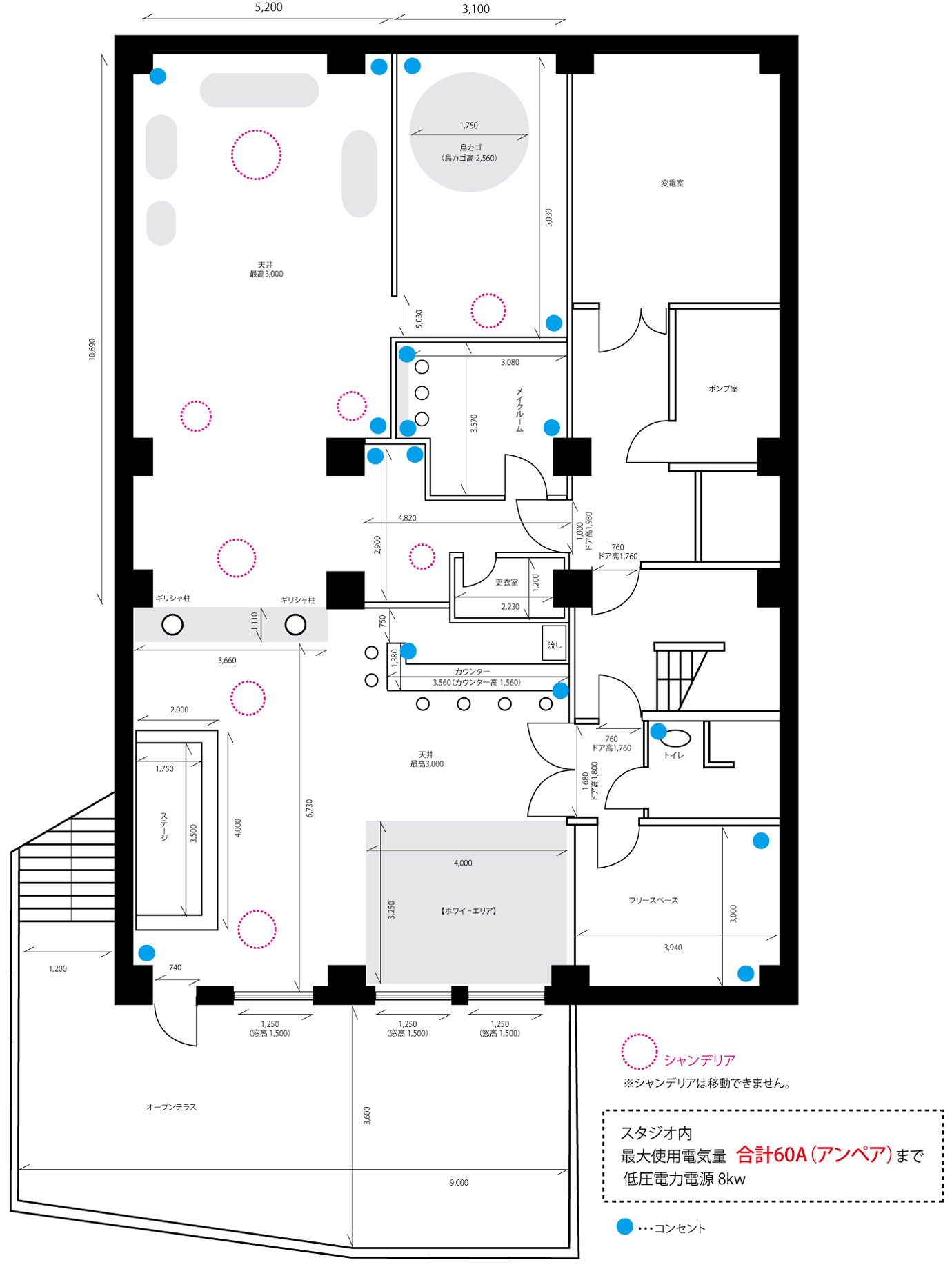 スタジオ電力容量 60A