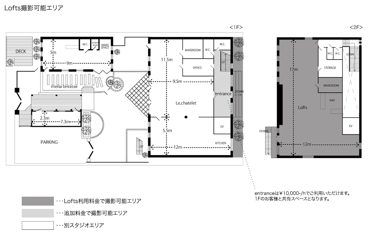- やむを得ない理由でご希望の時間外ロケハンをご希望のお客様には、 ¥10,000-/1 時間(税別)にて承ります。 1時間以上のロケハンはスチール料金が発生いたします。