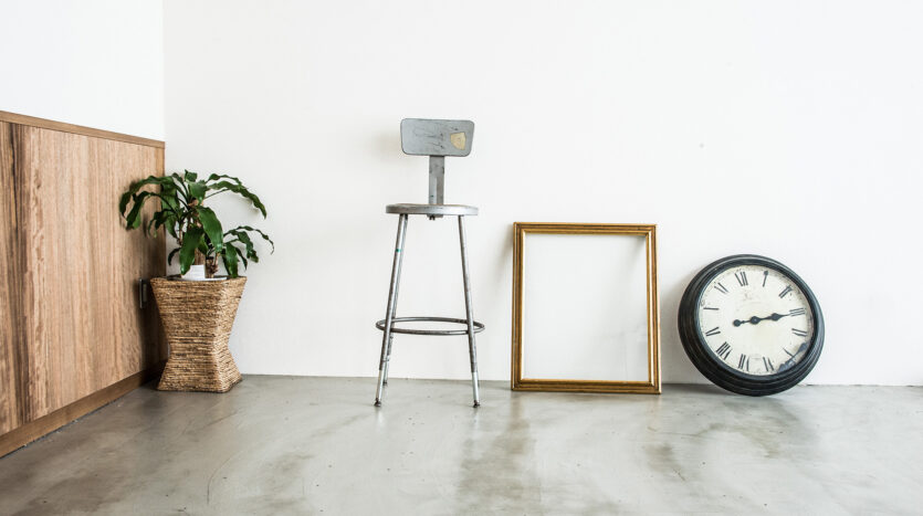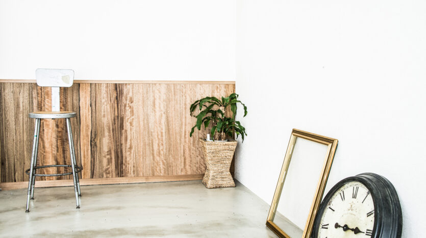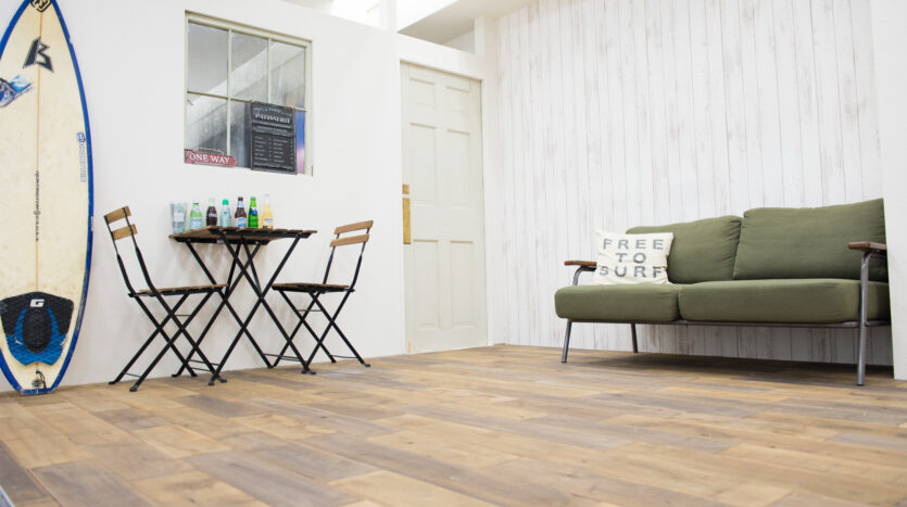 ハウススタジオエリアは約28㎡のスペースをモルタル仕上げの床と素材感がある無垢材のフローリングに貼り分け、白壁、ナチュラルウッド色の腰壁、ウッドデッキのような雰囲気の白い木製の壁など、限られた空間の中で多様な背景をつくり出しています。レトロ調の小物やモダンな家具、モノブロックストロボ、センチュリースタンドなどの撮影機材も用意されています。