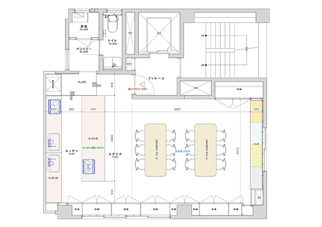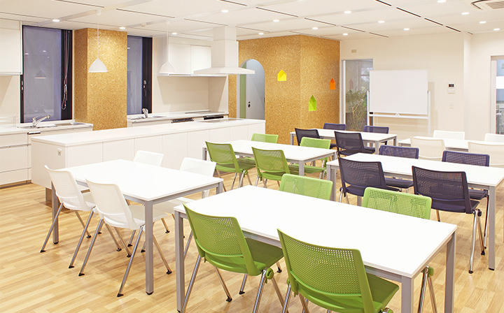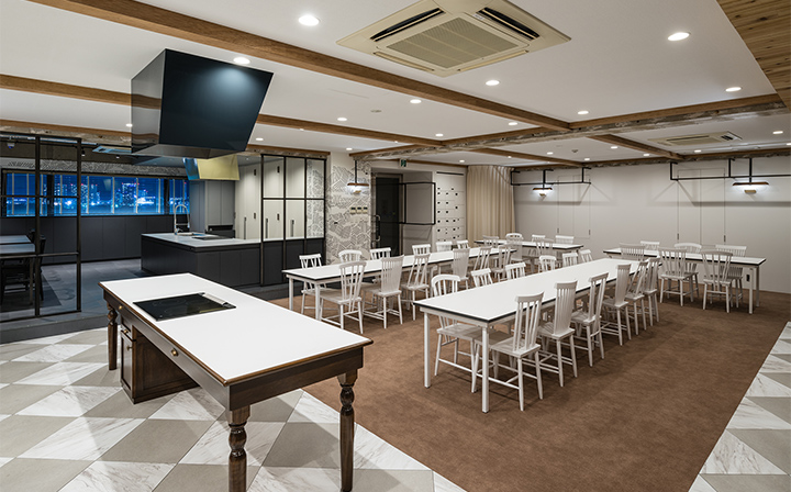 どの店舗もテーブルや椅子を移動して自由にレイアウト変更できるだけでなく、全店で動線のよいアイランドキッチンを採用しているので、様々な角度から撮影できます。