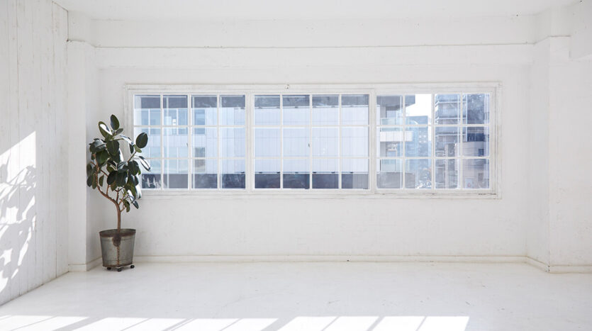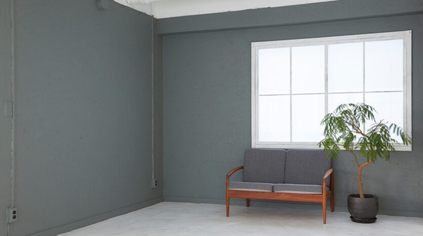 南に面したメインの窓と北西の窓から日中を通して柔らかな自然光が差し込みます。白く塗られたモルタル床と白を基調とした壁は、コンクリート、モルタル調、白ペンキの木壁の他、ウォルナット調のウッド壁、グレー塗装の漆喰仕上げの壁など多くの背景が選べ、一つのスタジオで多彩なシチュエーションに対応することができます。また取り外し可能な木壁は、床材として利用することも可能です。