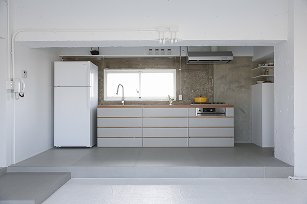 スタジオは大きく2つにエリア分けされており、1つは白壁、白床、ホワイト一色に統一されたフリースタジオスペース。もう一方は、白を基調としシンプルで生活感ある家具が設置されたリビング、ダイニングスペースとなっています。そのほか、広々とした実際に調理可能な本格的なキッチンやシャワースペースも用意されています。