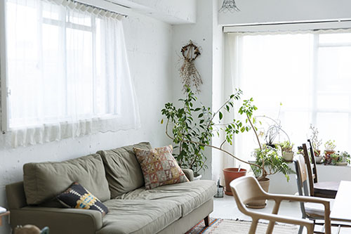 周辺に光を遮る建物がないスタジオは、日中をとおして安定して豊富な自然光が取り込まれます。