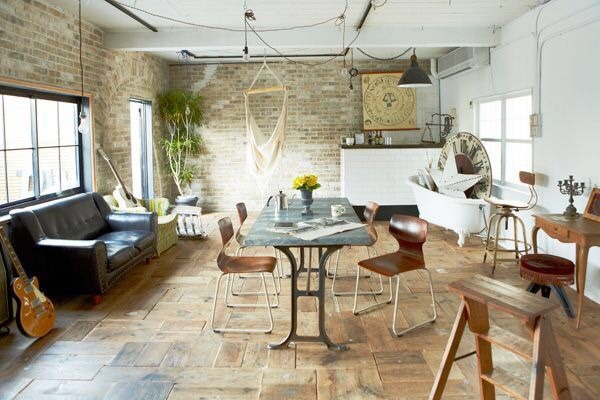 ブルースが似合うヴィンテージ感あふれる室内は、物撮りやモデルを使った撮影に最適。室内の壁は、白壁と色褪せた風合いのレンガ壁に貼り分けられ、古材を使った味わいのあるフローリングや白に塗装されたと天井板とのコンビネーションがアーティスティックな雰囲気を醸し出しています。黒枠の窓、選び抜かれた家具、小物類もヴィンテージなものが用意され、可動式の壁など目を引くものがあります。