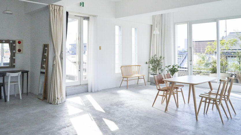 スチール・ムービーともに1時間から利用できる手頃さもポイント。テーブルやチェア、ソファなど、シンプルな家具が揃っているので、商品撮影からモデル撮影まで幅広く対応できます。