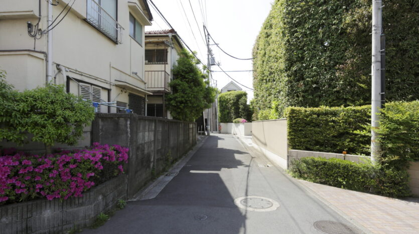 池尻大橋駅から徒歩5分、静かな住宅街の一角に佇む庭付き一軒家スタジオ。建物の前面が行き止まりの私道で、道路申請許可不要という敷地が大きな特徴です。