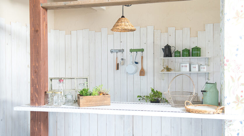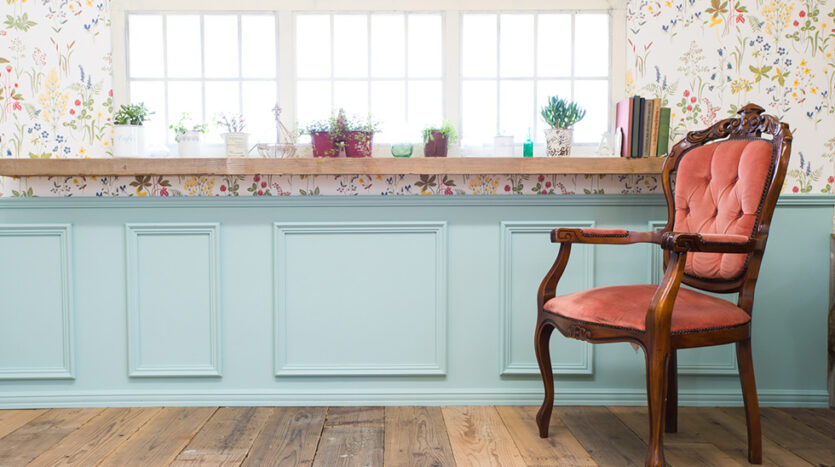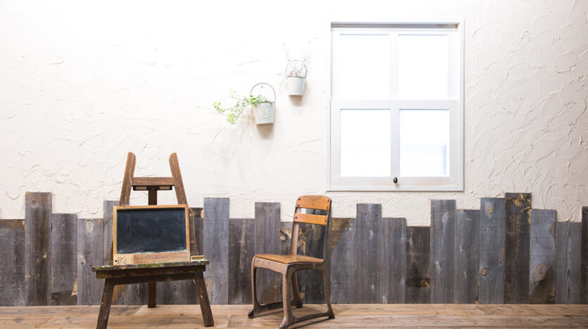 3階建て一軒家をパリのアパルトマンのようなイメージにリノベーションした空間は、ナチュラルなフレンチテイストが魅力的。広々とした空間に、ヴィンテージ家具やシャビーな風合いの床や板壁などがあり、使い勝手も抜群です。