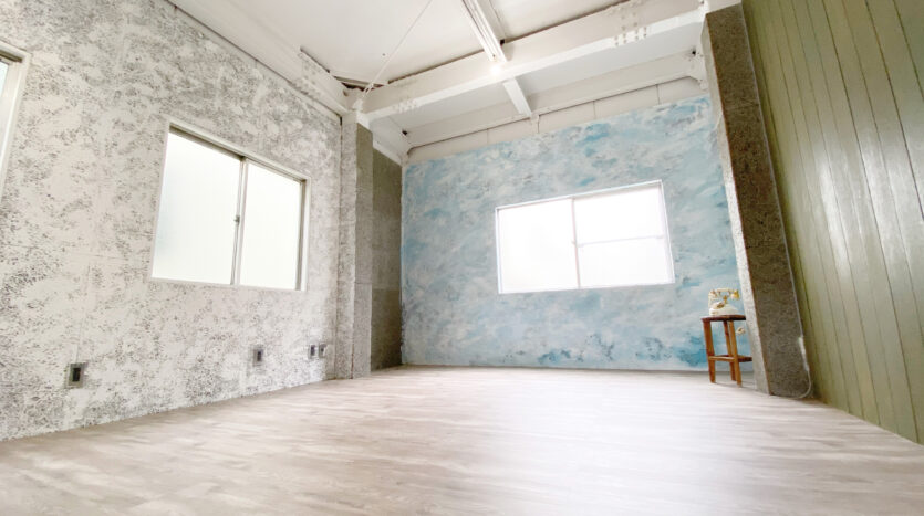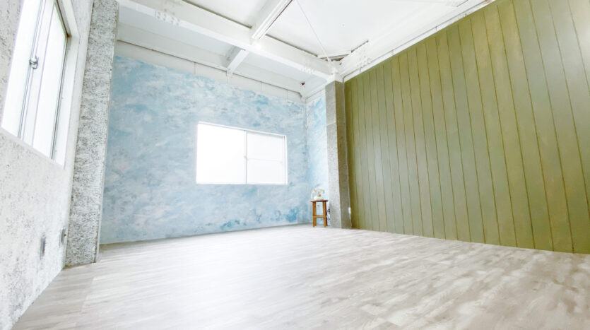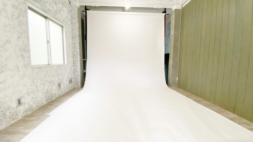 2階と3階がスタジオとなっており、2階は窓付きの白ホリスペース。片面の壁は撮影しやすいグレー壁で、光が回りすぎず使いやすい空間です。3階は、全ての壁面のデザインが違うスペースとなっています。天井高は約3mありライティングにもこだわれます。また、オートポールを使用して背景紙撮影も可能なので、色々な背景色にこだわりたいポートレート撮影やヘアカタログ撮影などに便利なスタジオです。