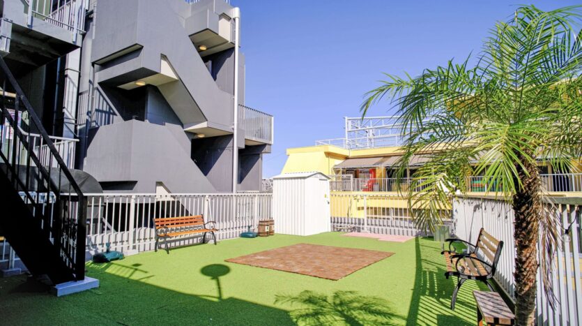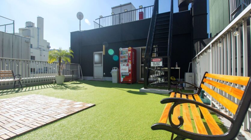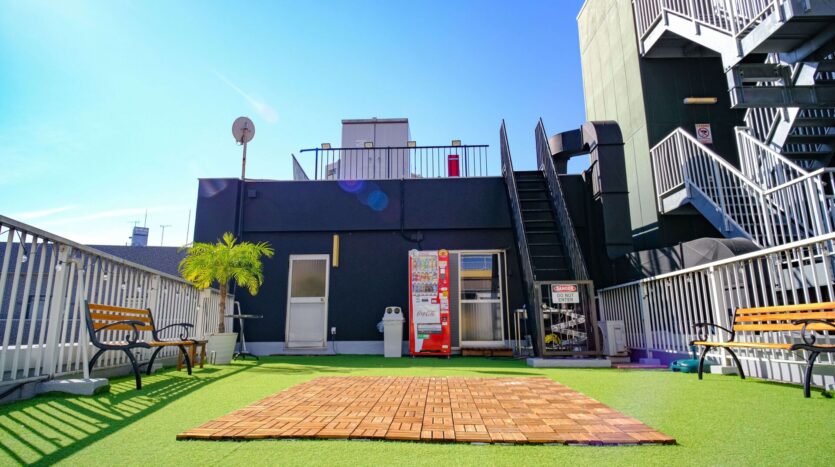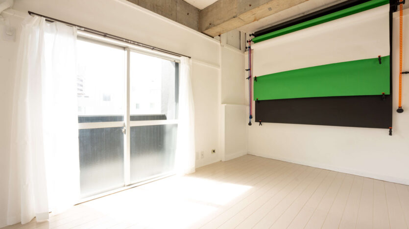 室内スタジオは自然光撮影が可能な2DKの間取りで、インダストリアルスタイルとレトロな雰囲気のある白壁の2部屋になっています。ペット撮影もOKな広々とした屋上テラスは、一面の人工芝、ところどころに置かれたベンチチェアが屋上公園のような開放感なスペースです。