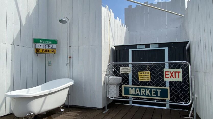 屋上フロアは、ウッドデッキと周囲の目線を遮るのにも役立つ白いウッドフェンスで囲まれ、アメリカ西海岸のようなテイストです。グラビア撮影にも最適な空間です。