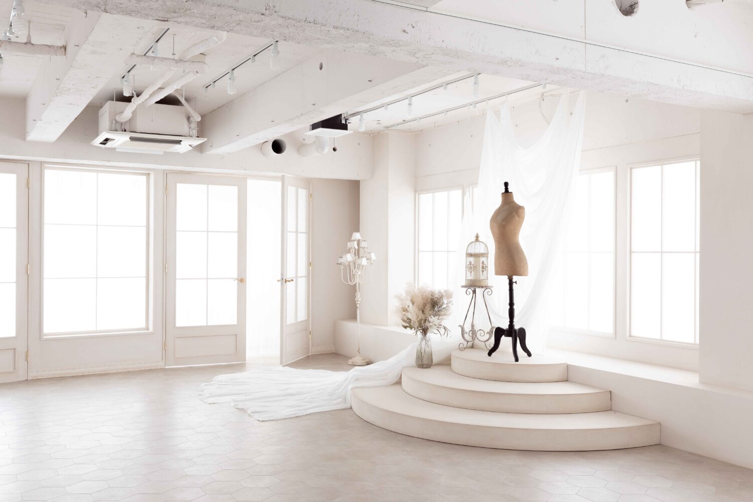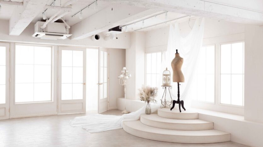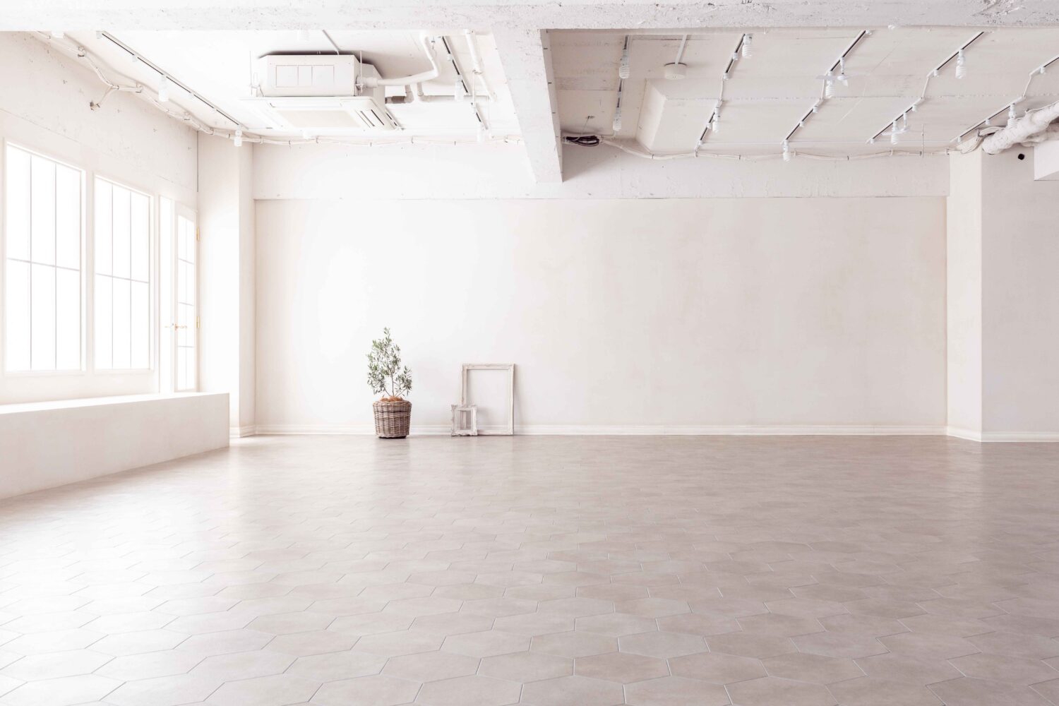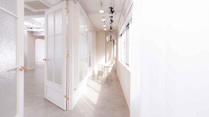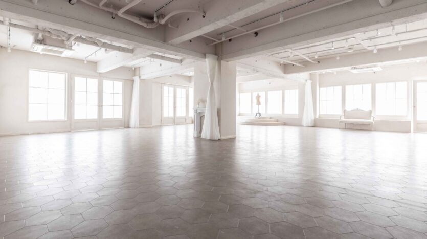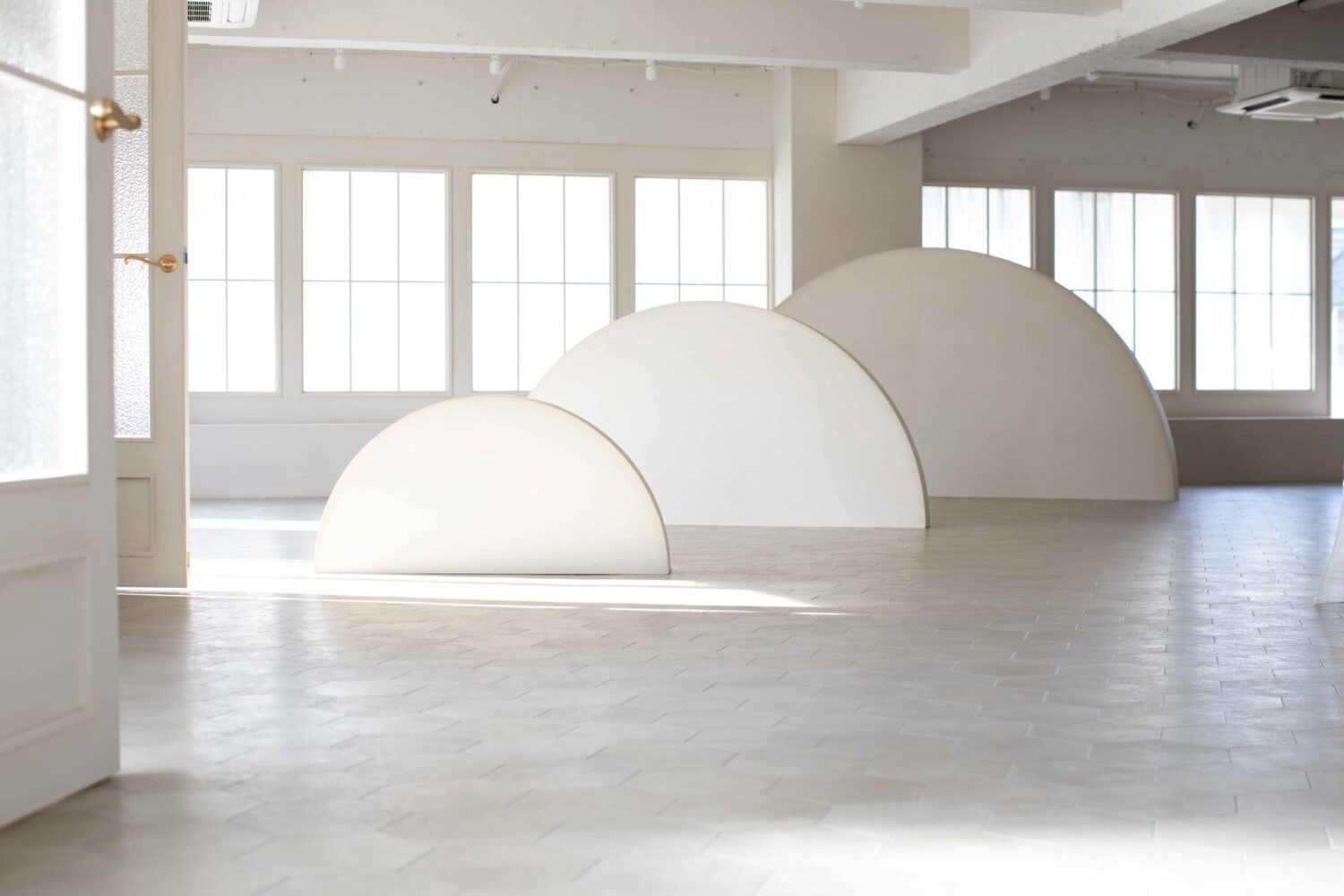 白を基調とし、自然光がたっぷりと入る天井高が3m、200㎡を超える広さのスタジオは、エイジング加工が施され、長年使い込んできたような質感がアンティークな印象を醸し出しています。全面に自然光が差込みL字型にスタジオを囲むサンルームは、窓裏ライティングができ、日差しの弱い天気、早朝や日没後でも天候に左右されずナチュラルな日差しが再現できます。また、幾何学模様を施したティンパネルの壁面や床一面のヘキサゴンタイルがアール・デコ調の雰囲気も演出します。