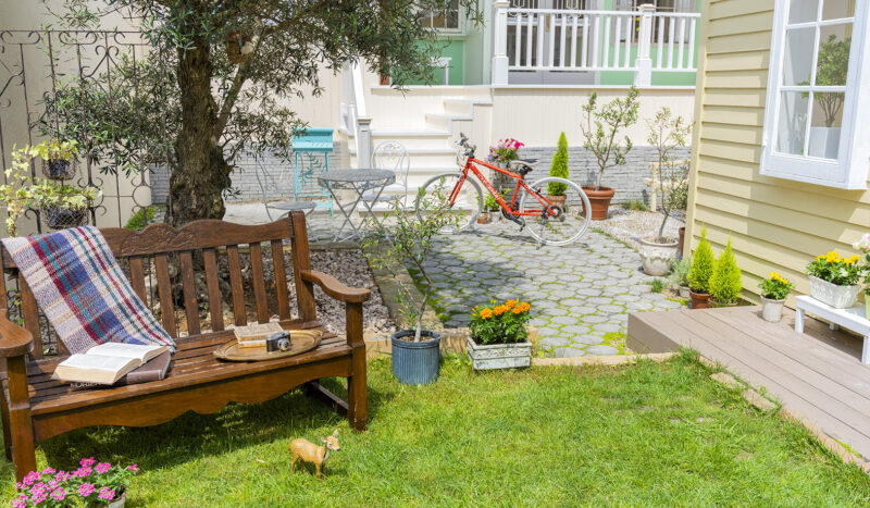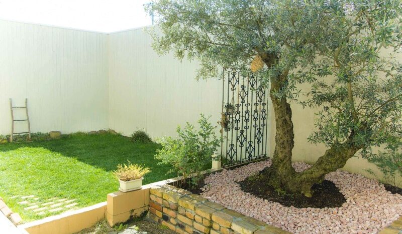 丁寧に管理してオールシーズン緑の芝生を維持しています。片隅にはシンボルツリーとして、樹齢200年のオリーヴの樹もあります。