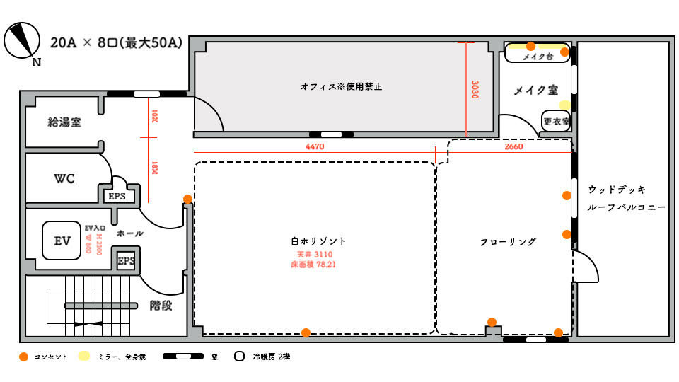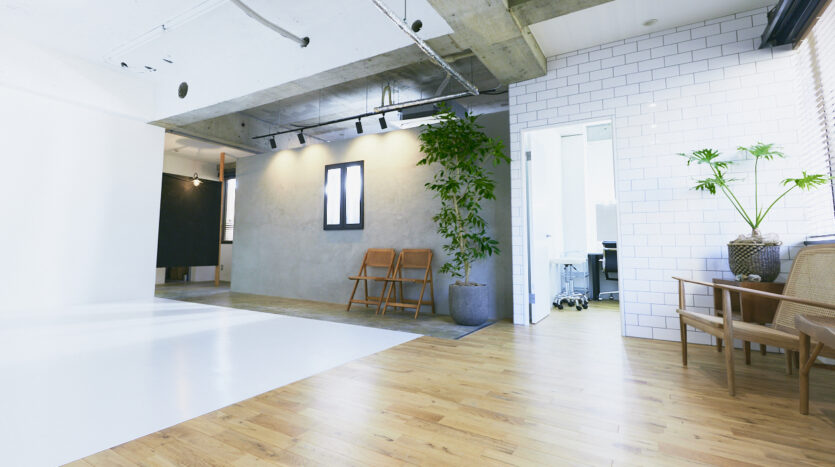 スタジオ内は、天然木のフローリングと漆喰壁が調和した空間が魅力です。自然光の入る時間帯もあり、定常光や瞬間光といった照明機材なども充実しているため、光の演出を自由にできます。