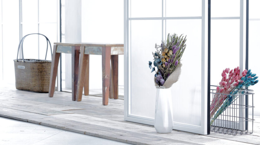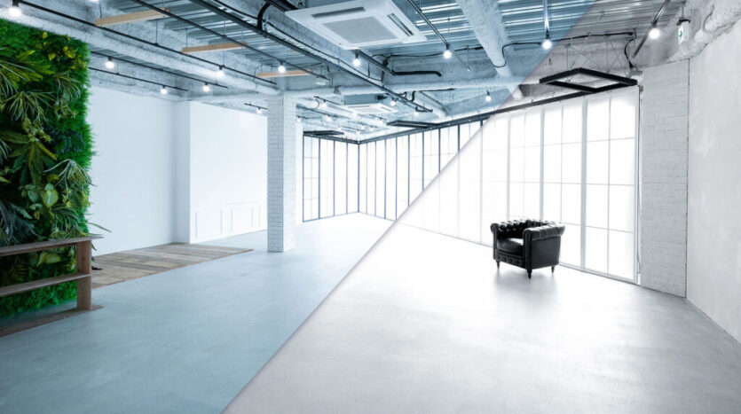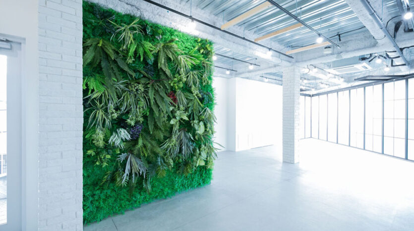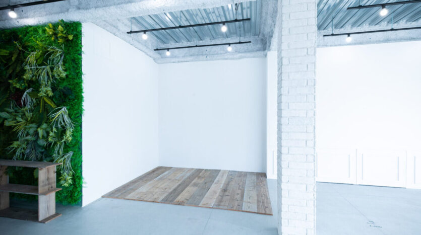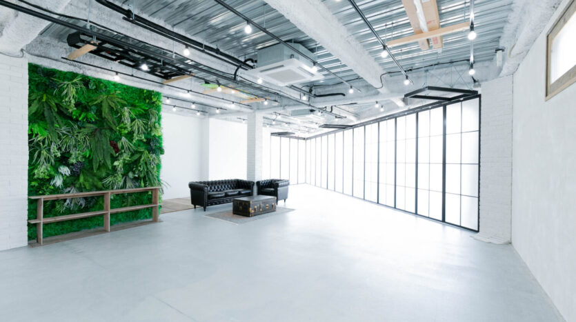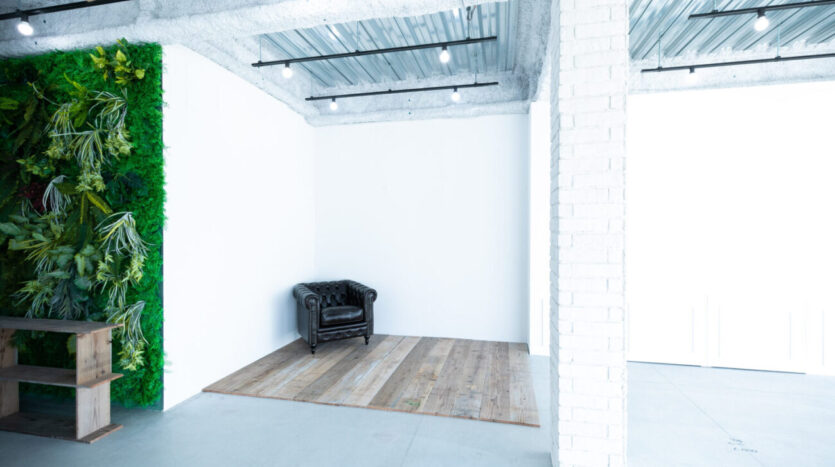 インダストリアルな空間にまとめられたスタジオは、白壁やモルタル風の独特なテクスチャー感が味わい深いナチュラル色の壁、ボリューム感のあるフェイクグリーンが圧倒的な存在感を放つボタニカル調のグリーンの壁、ヴィンテージ調の古い赤レンガの壁など、多様な背景を選択できます。さらに、窓枠型パーテーションは白黒入れ替えができるため撮影シチュエーションを増やします。