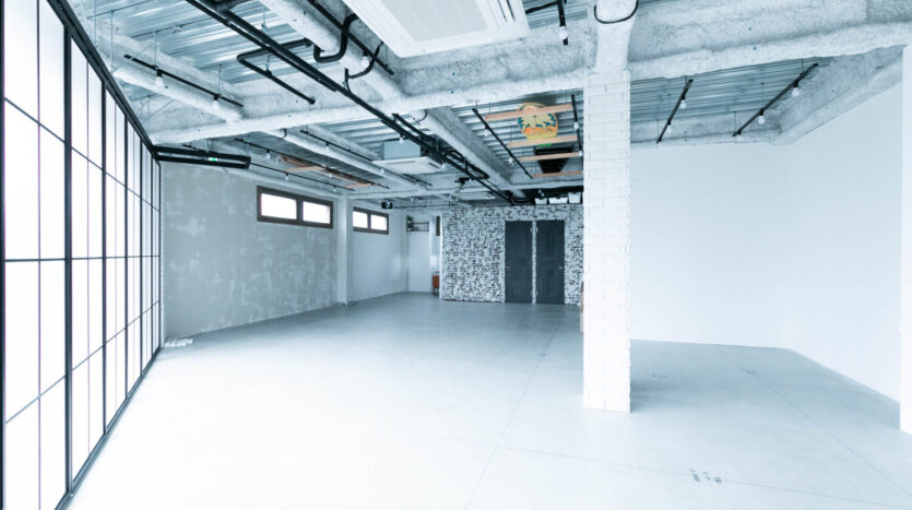 自然光があふれる二面ガラス張りの明るい屋内スタジオと屋上約75㎡をあわせ170㎡を超える大型空間です。