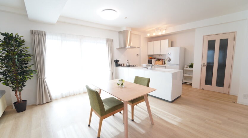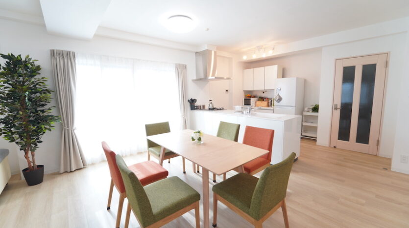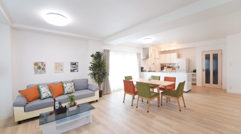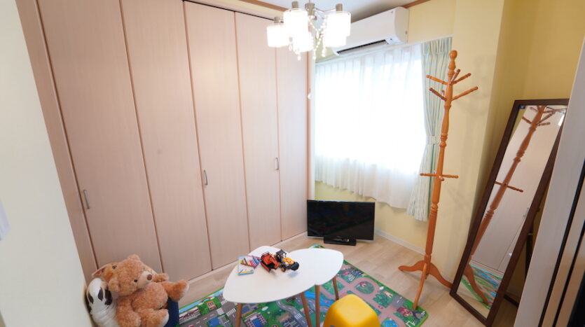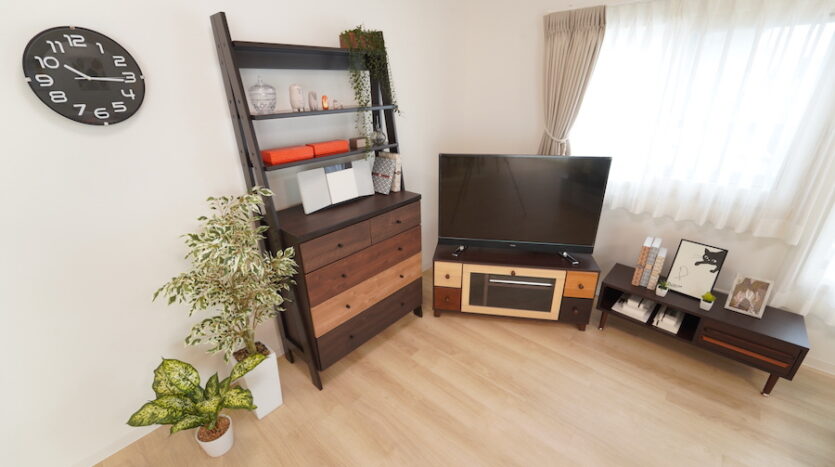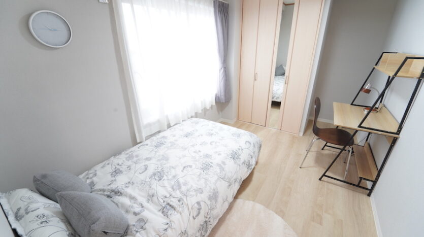 スタジオ最大の特徴である南向き33畳の大きなリビングダイニングは、3面からまんべんなく自然光が差し込みます。ダイニングテーブルとチェアのセットが数種用意されており、レイアウト次第でシングル世帯のワンルームからファミリー世帯まで幅広い撮影シーンに対応できます。同じく北側にある個室にもシングルベッドを設置し、シングル世帯に適したレイアウトやダブルベッドでファミリー世帯の寝室あるいは子供部屋にとレイアウト変更ができます。