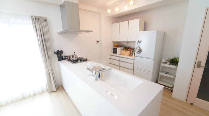 もう一つの自慢はフルオープンキッチン。幅広く作られたキッチン通路は、複数人が十分に動けるスペースがあり、3口コンロやオーブンを使った調理シーンやキッチングッズの撮影、高速インターネット回線を使った動画配信も可能です。