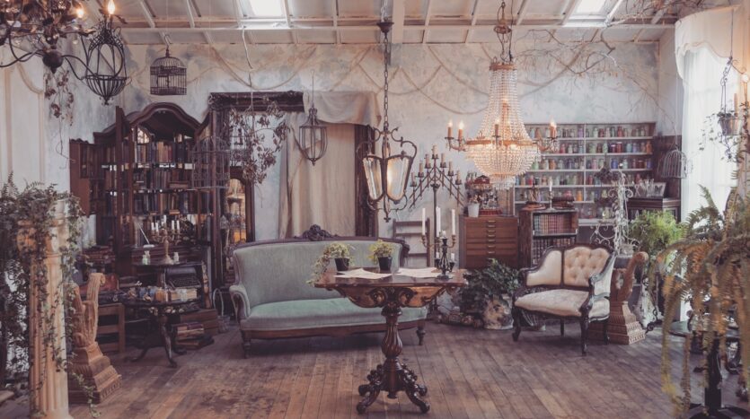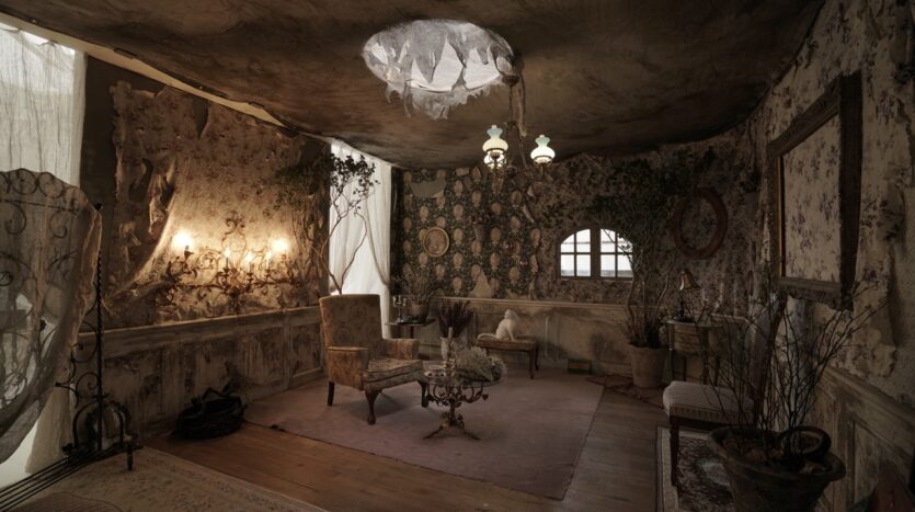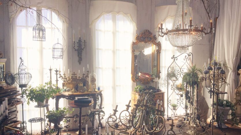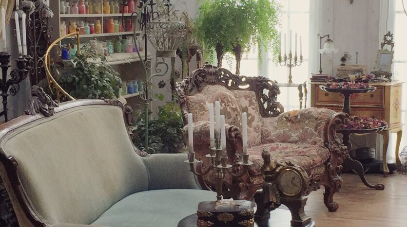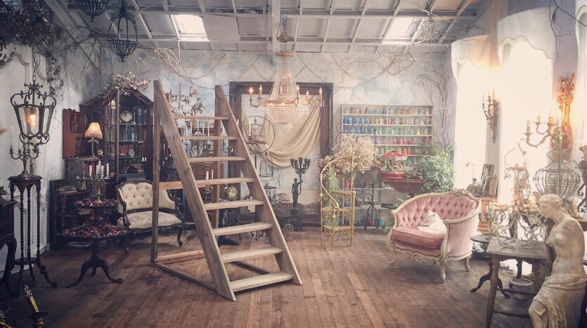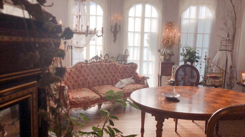 長い歴史を経て大切に受け継がれてきた本物のアンティーク家具を主体に、床、壁、天井を含むスタジオ全体からその空間を彩る細かな飾りまで全てに時間をかけてハンドメイドで作り込まれています。
