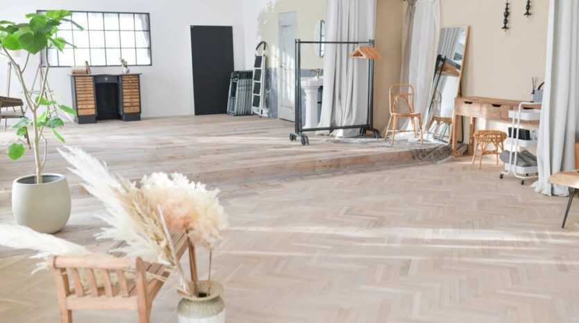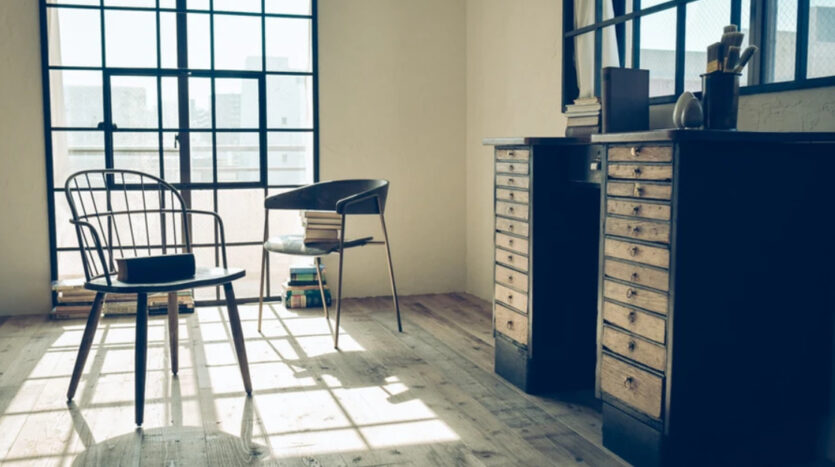 本物志向、被写体の魅力を引き出す雰囲気のある素材達。約80㎡の白を基調とした室内に無垢のヘリンボーンと足場古材に分けられた床、たくさんの観葉植物や古書、アンティークドア、そしてヴィンテージのデスクやソファベッドなどこだわりの家具類で多彩なシーンを撮影可能です。