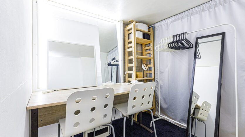 有料のシステムキッチンもあり、料理撮影やメニュー撮影にも対応しています。また、無料で利用できるメイクルームは、仕切り壁も設置しているので出演者の控室としても活用できます。商用や個人利用問わず、幅広い用途に重宝するスタジオです。