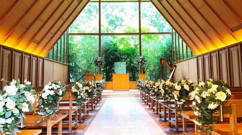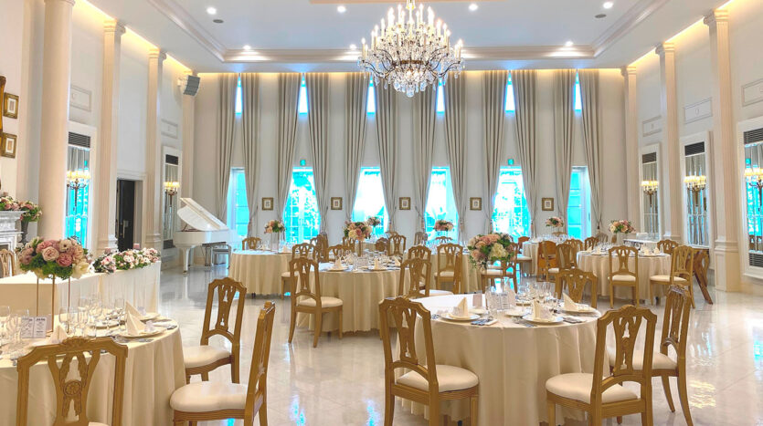 豊かな自然に囲まれた広大な敷地にある2つの異なるタイプの洋館は、凱旋門の奥に荘厳な大階段と、純白のチャペルが印象的な「ホワイトハウス」と、プール付きガーデンと祭壇奥から木々が顔を覗かせるチャペル「ヴィクトリアハウス」の2つがあります。