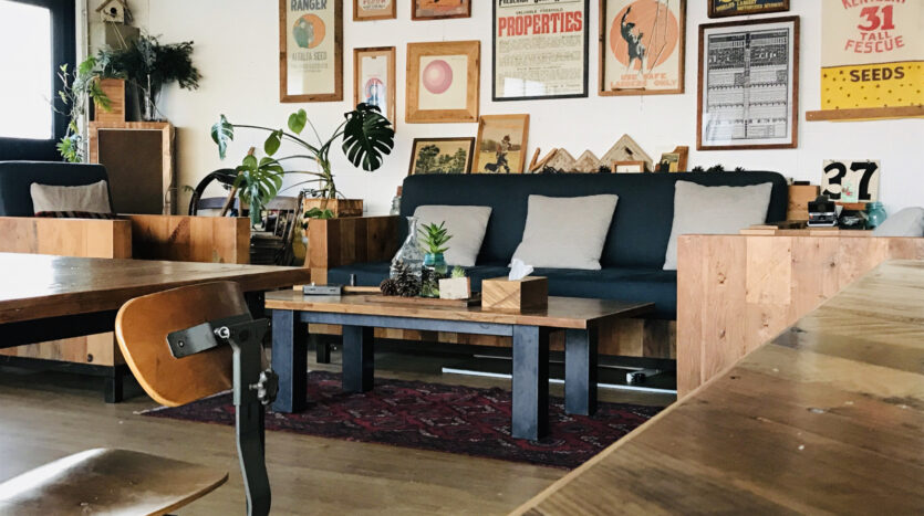室内にはソファやテーブル、チェアなどを配置。アンティークや海外のインテリア素材を取り入れており、リラックスした雰囲気の中で、撮影やミーティングなどを行えます。