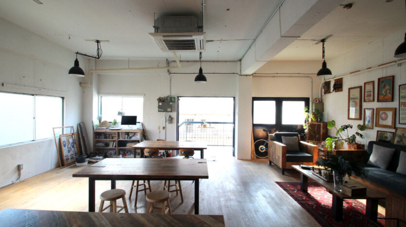 神楽坂駅から徒歩4分の場所にあるステイプル ルームは、古い印刷工場の最上階を改装したハウススタジオ。開口部が豊富にあるので、自然光が降り注ぐ明るく開放的な空間です。