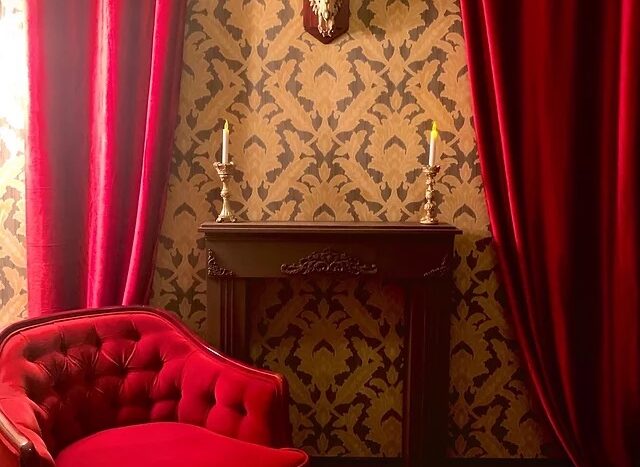 ステンドグラスや柄の壁紙、重厚なインテリアで演出した洋室と赤い壁が印象的な和室などのシチュエーションが揃っており、廊下での撮影も可能です。