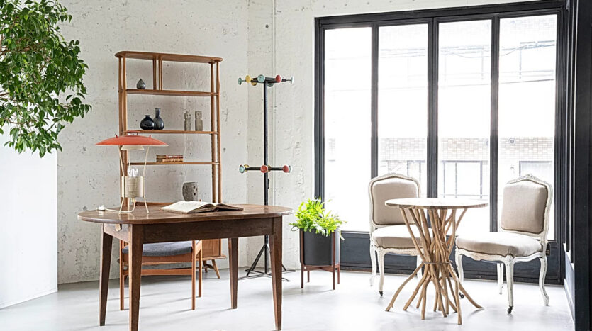 ショップで扱っているヴィンテージ家具は無料で利用でき、コーディネートの幅も広がります。メイク&フィッティングルームもあるので控室としての活用にも最適です。