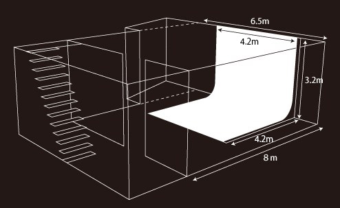 アットホームで居心地のいい雰囲気を大切にした空間は、天井高3m以上の白アールホリゾントも設置しており、商業撮影やオーディション撮影会などに重宝します。