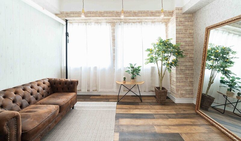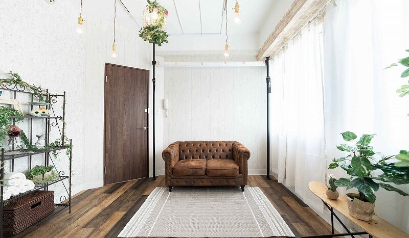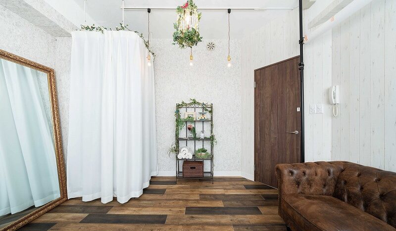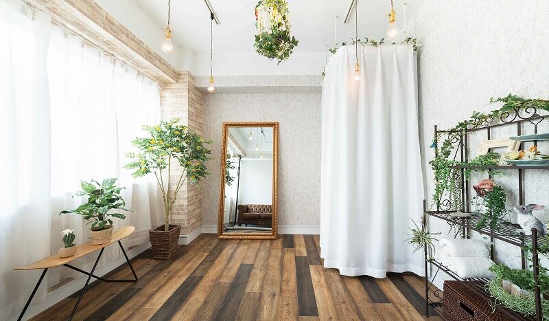 ボタニカル風をコンセプトに、木目とグリーンを活かした明るい雰囲気。自然光が入り、ナチュラルな装いのポートレートや宣材写真の撮影の他、法人での利用が多い空間です。