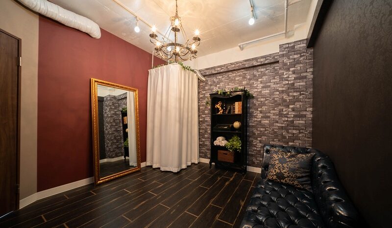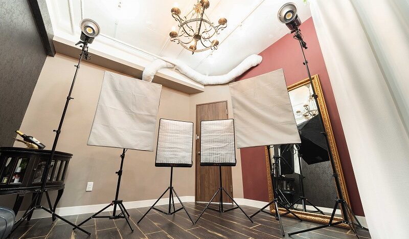 重厚感のある家具を配置し、小物、壁紙などにゴシック調のエッセンスを取り入れた中世ヨーロッパを思わせる空間。窓がないため光を絞った撮影に最適です。