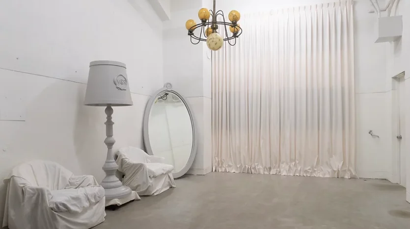 WHITE ROOMは、ホワイトを基調とした空間で、揃えられている家具も白がメインです。高い天井を活かしたロングカーテンも撮影に役立ちます。