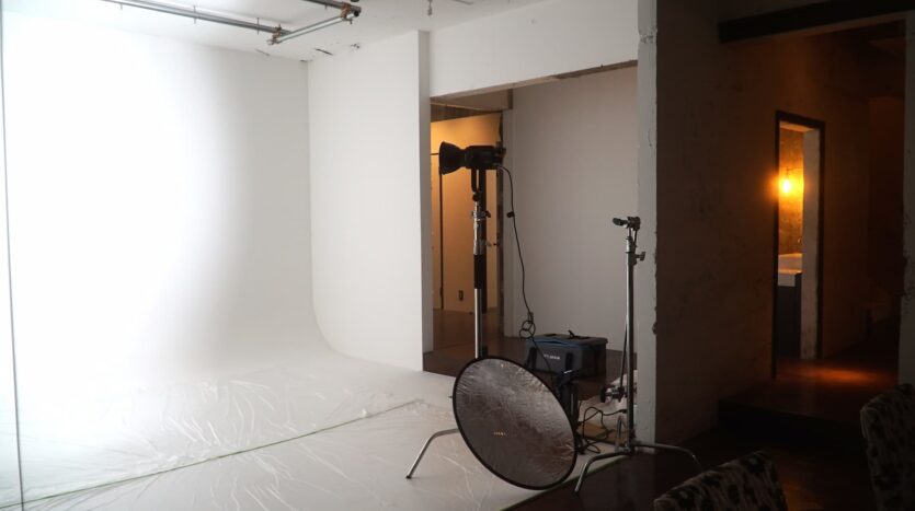1階にあるフォトスタジオは白ホリなので、時間帯や天候の関係なく撮影できるのがメリット。
