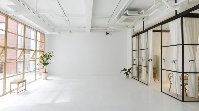 自然光を採り入れての撮影、遮光してのストロボ撮影のほか、代々木公園のロケと組み合わせられる利便な立地で撮影の幅が広がります。
