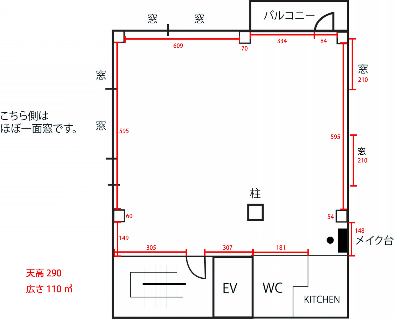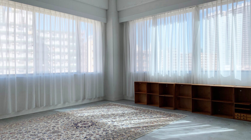スタジオの西側部分はほぼ全面が窓になっており、隣接した建物がないので抜けのある撮影が可能です。
