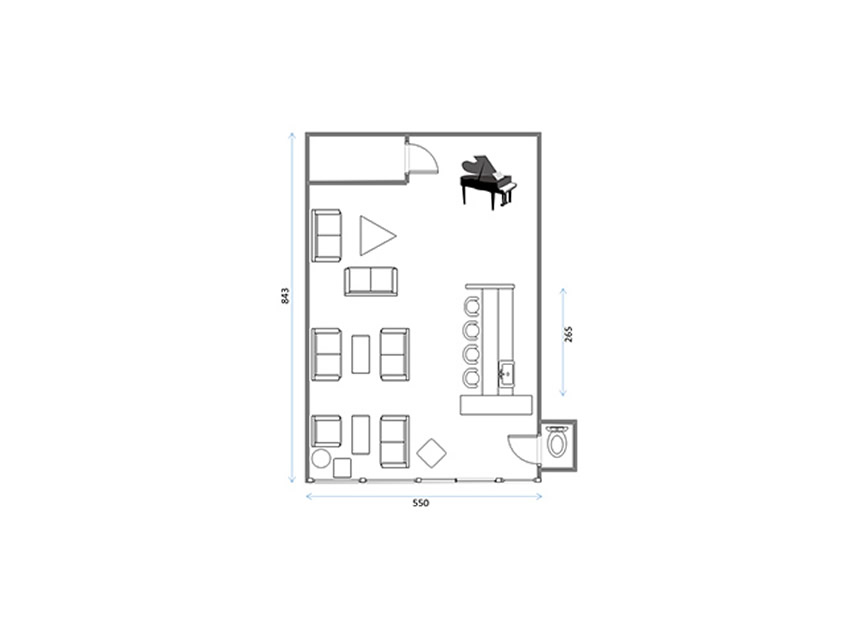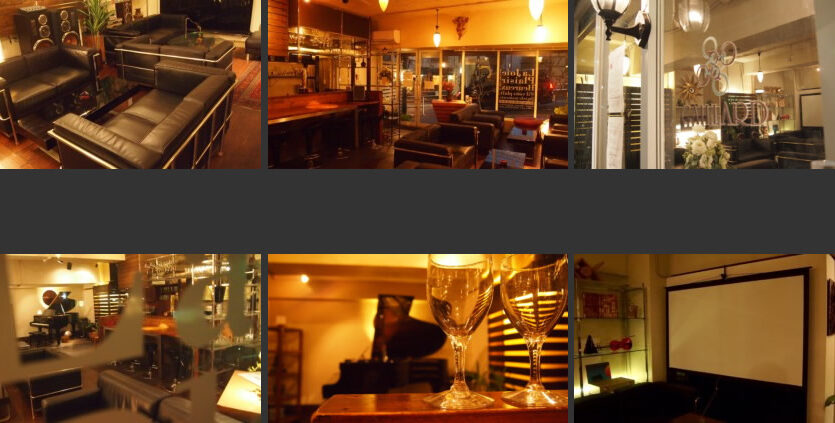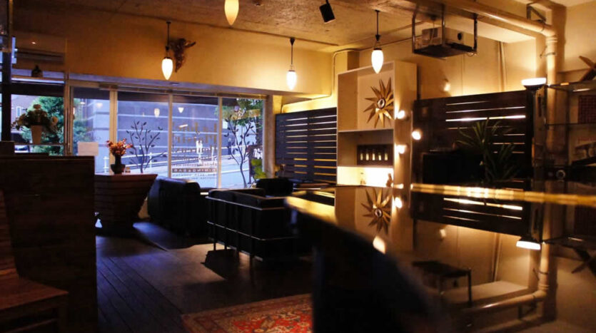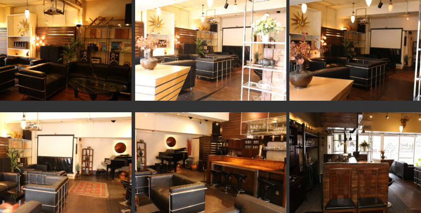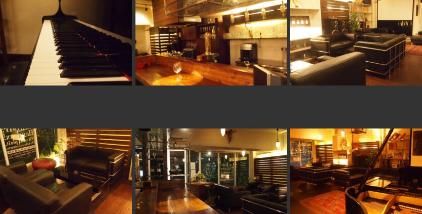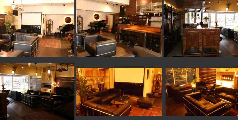 津ノ森坂通りに面したビルの1階にある「サロンガイヤール」は、日中は自然光がたっぷりと射し込み、ふんだんに使われたチーク材とゆったりと座れるソファが、スタイリッシュな空間を演出します。一転して夜間はグランドピアノがあるラグジュアリーでゴージャスな雰囲気となり、昼間はカフェ、夜間はお洒落なバーといった使い分けができます。